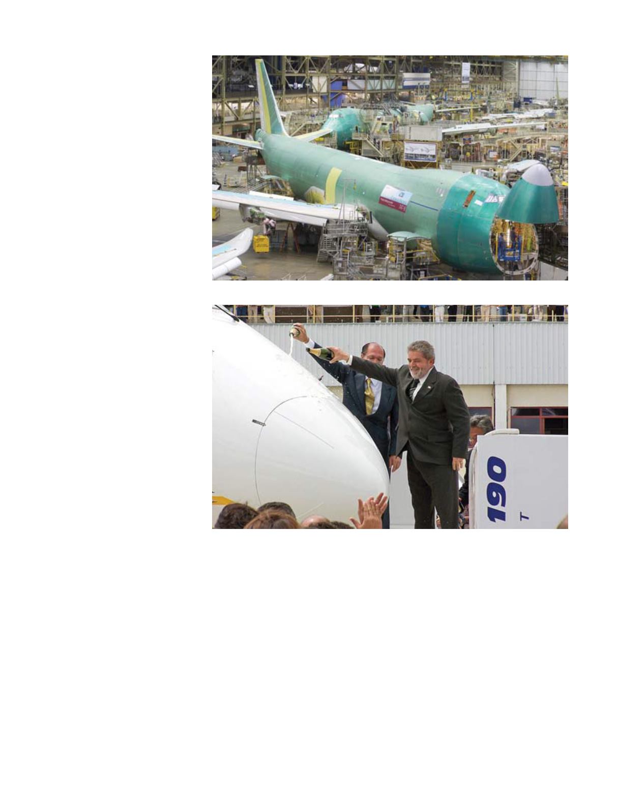 El entonces presidente Lula da Silva bautizando una aeronave de la brasileña Embraer,
